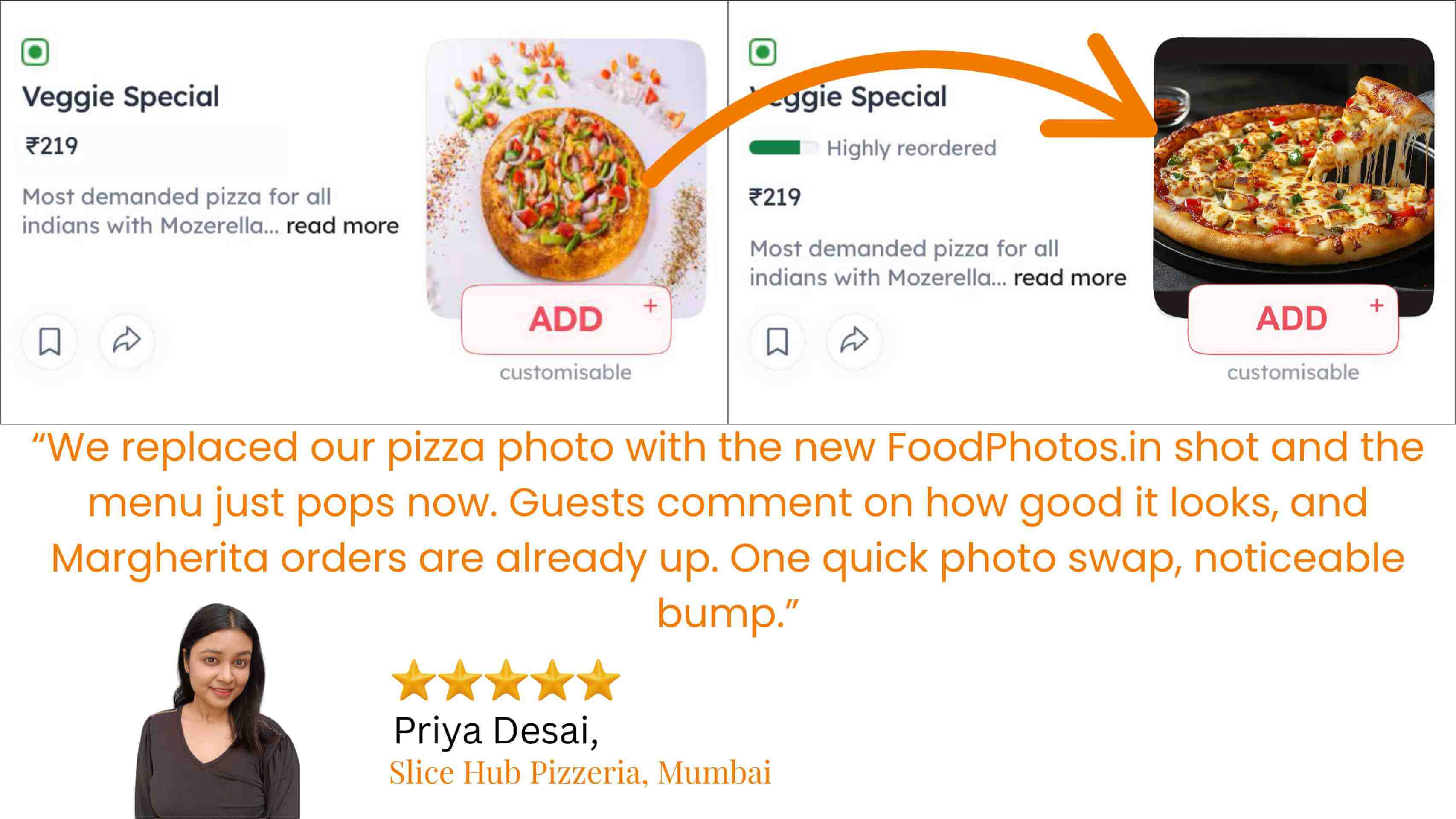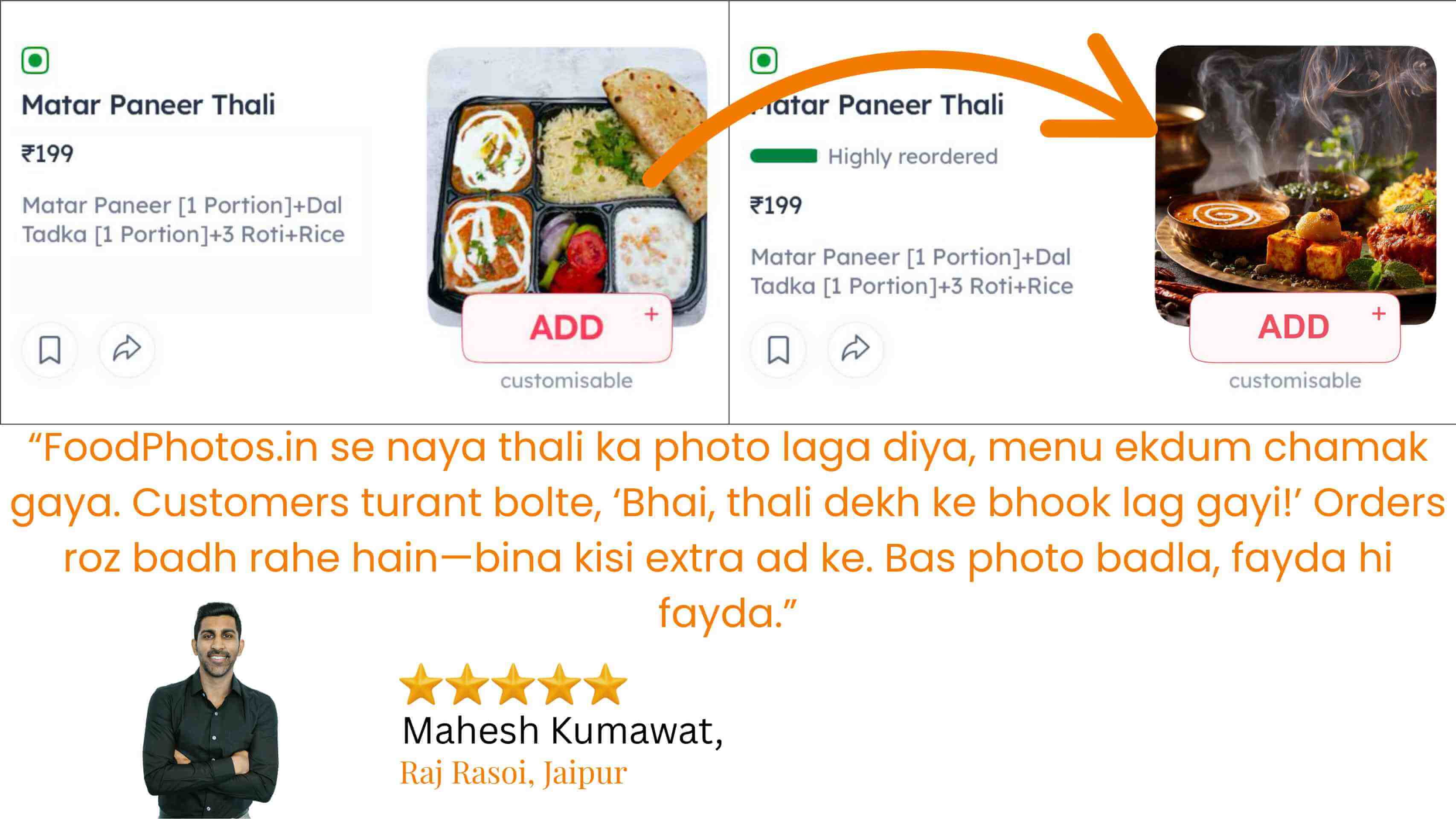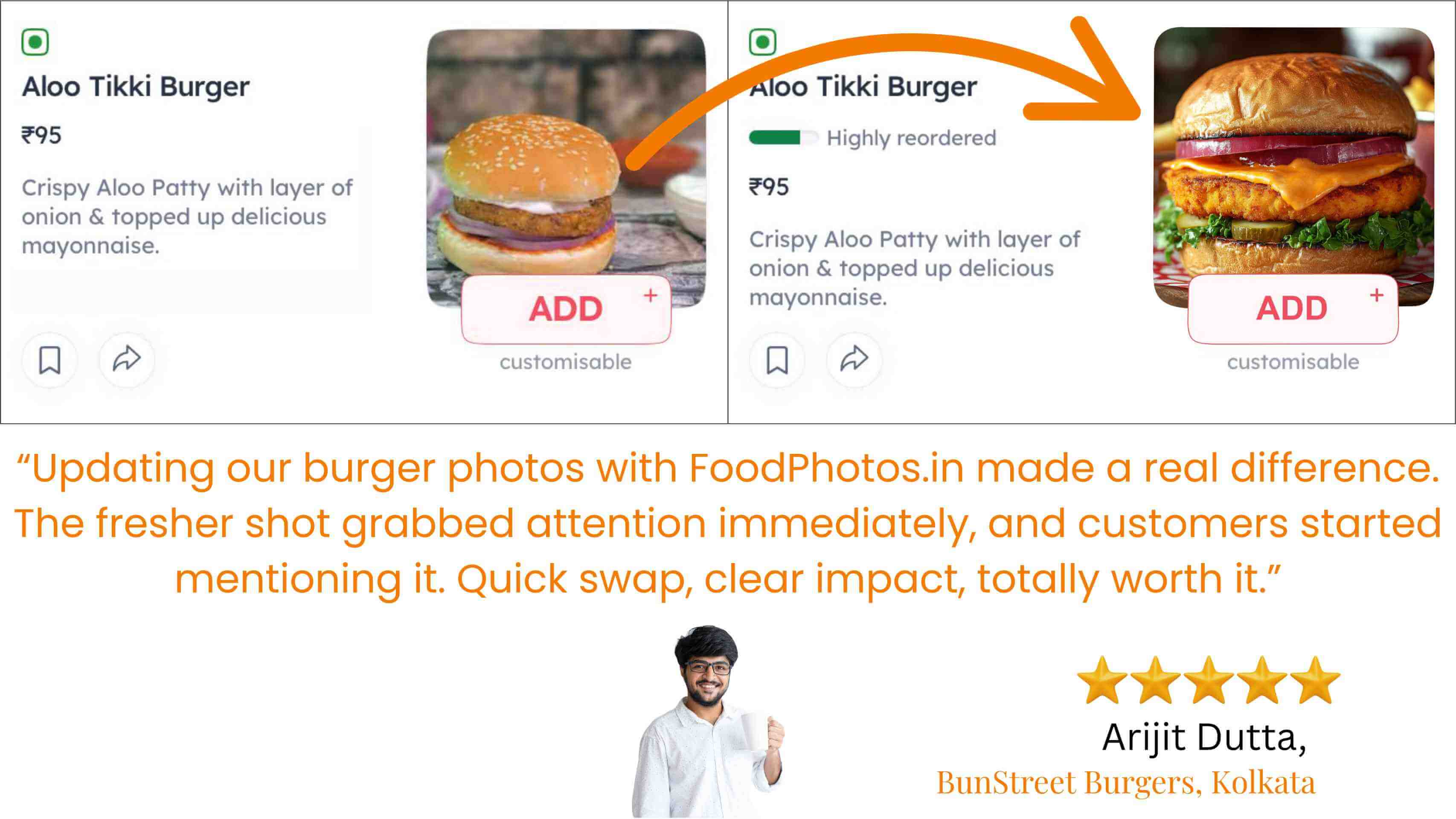A month in, your Click-to-Order ratio (CTO) climbs by 35 %, and your average order value (AOV) inches up as customers start adding sides they can actually see. You’ve recouped your one-time ₹997 investment in under 1 week, and your Swiggy/Zomato rating is flirting with 4 ★